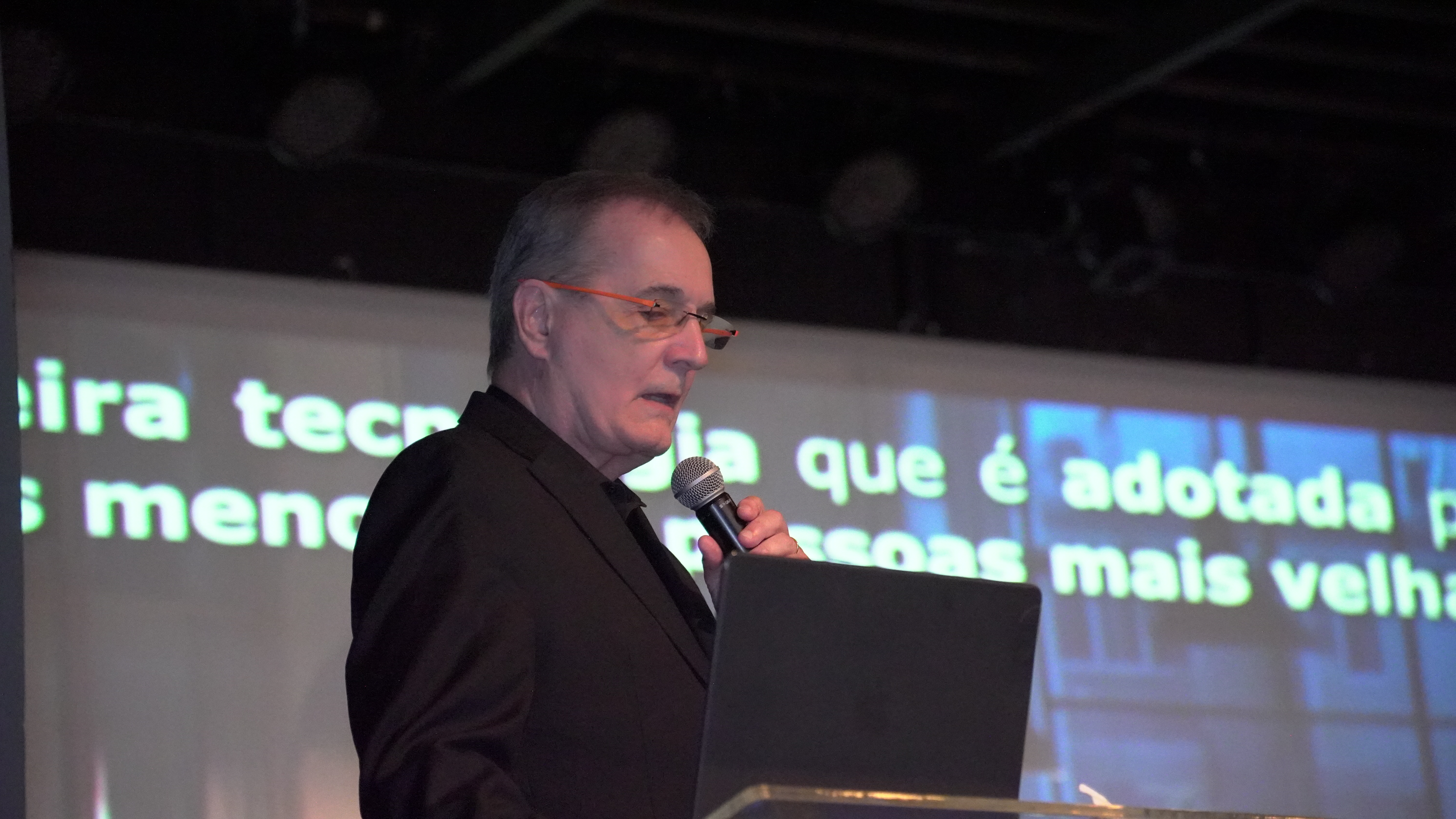 O palestrante Walter Longo reforçou a mensagem de que a tecnologia é uma aliada e não uma substituta para o trabalho humano, focando em como a IA pode aprimorar a rotina de vendas e gestão.